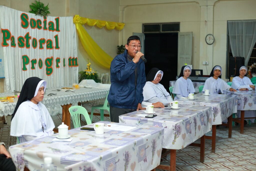 The program concluded with a symbolic sending ceremony on January 19. A cross, which expresses God’s love and sacrifice, and is a symbol of reconciliation and forgiveness, a candle represents the light of Christ, symbolizing faith and the presence of God. It provides hope in the darkness. A Bible is the living Word of God, the foundation of faith and mission, the source of truth and wisdom. It is also the guiding symbol for missionary work. A staff that represents care and protection, and also indicates the authority that comes with responsibility in religious work. And sandals that represent a life of being ready to walk with the people, ready to serve, and sent forth to do ministry. Five items were presented to represent the sisters’ mission of love, light, guidance, protection, and readiness to walk alongside those they serve.