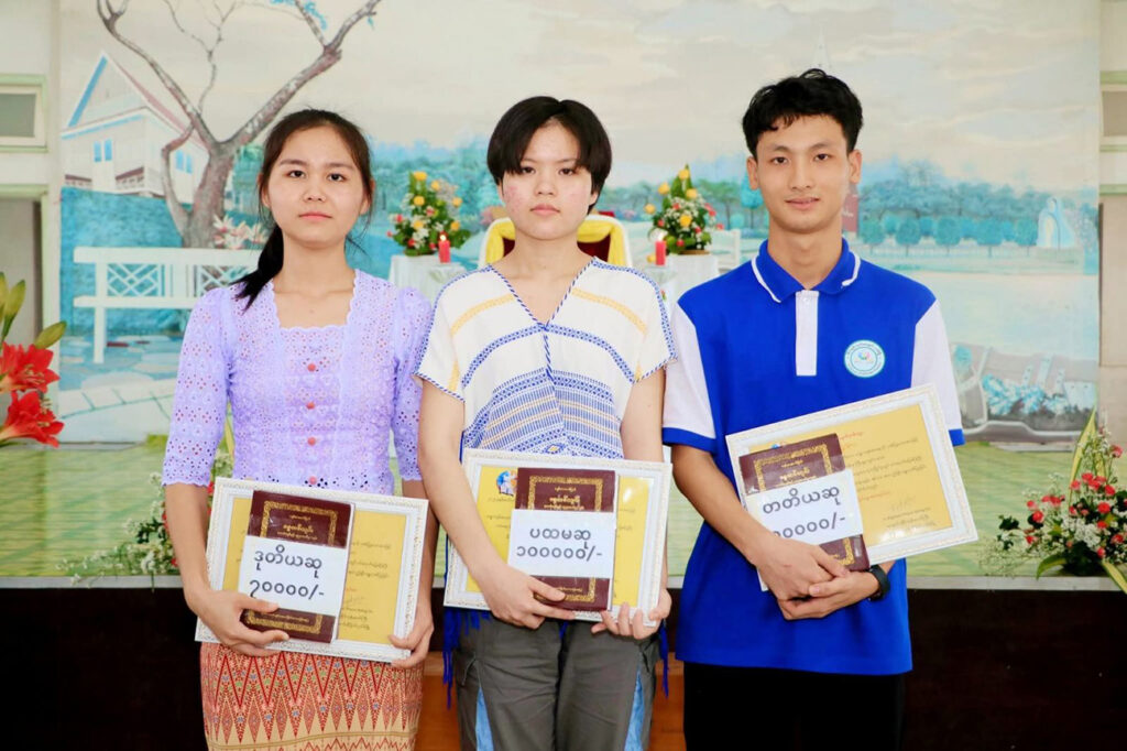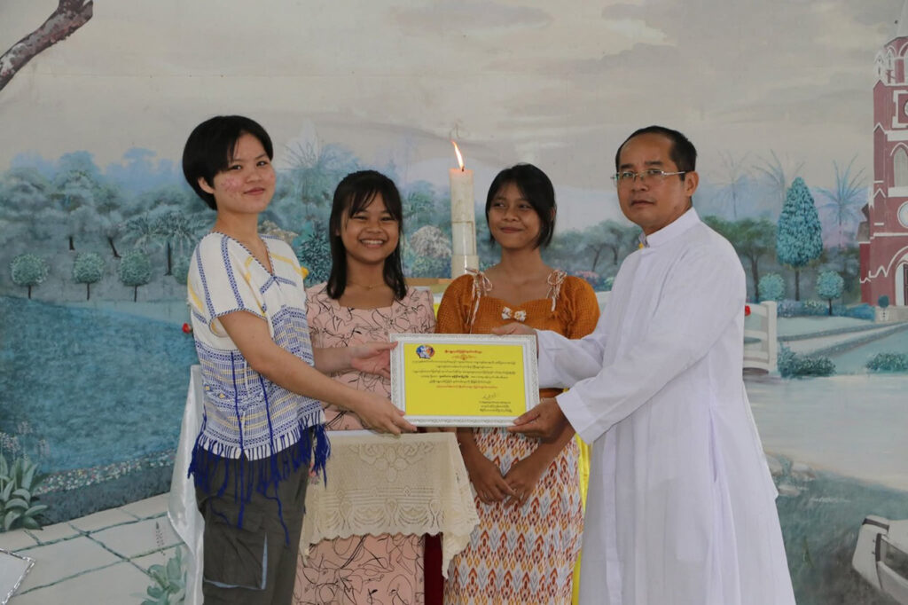 Jacinta Nant Khaing Zar Chi Soe, a Grade 11 student from St. Philomena’s Boarding School, received the First Prize. Justina Naw Khushi, a kindergarten teacher, was awarded Second Prize, and Remi Saw Lyan Htet Myat, a Grade 10 student from St. Bruno, received the Third Prize. Each participant was also presented with a copy of the Holy Bible.