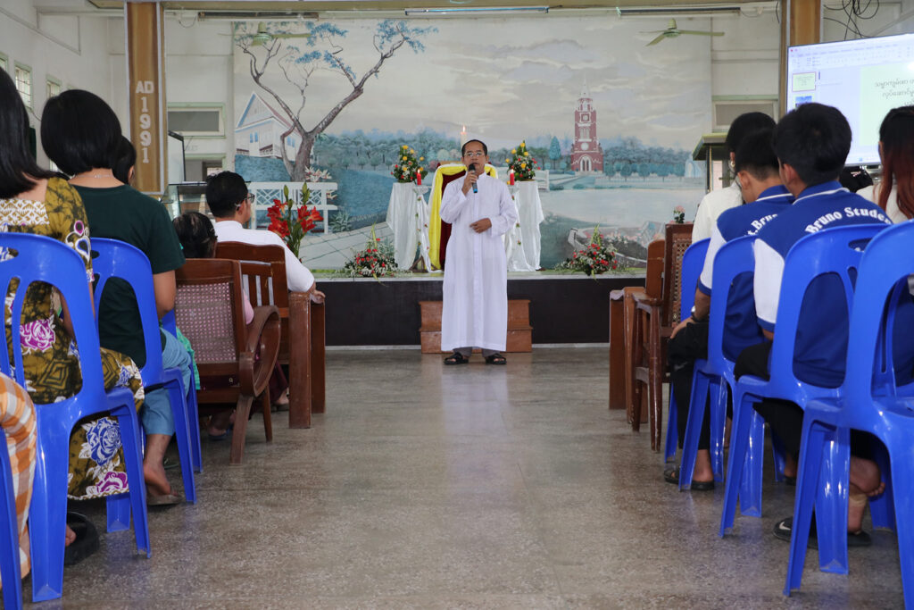 Fr. Augustine Aung Soe Naing connected the ceremony’s lamp-lighting ritual to Scripture, quoting Psalm 119:105: “Your Word is a lamp to my feet and a light to my path.”