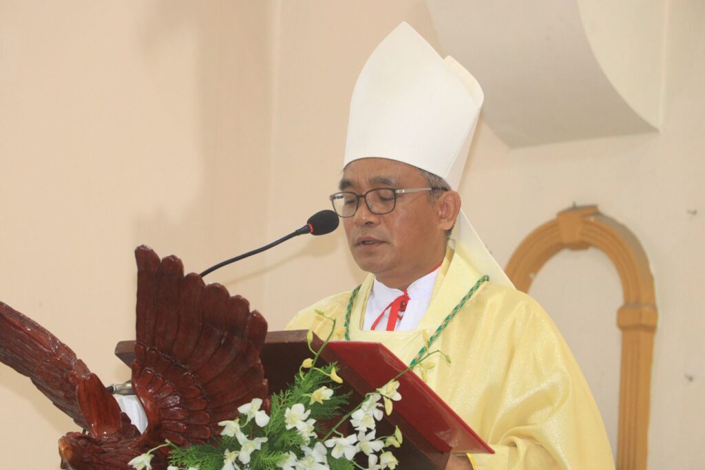 Bishop Augustine Thang Zawm Hung, Bishop of Mindat Diocese is delivering the homily (Photo by RVA Sgaw Karen)