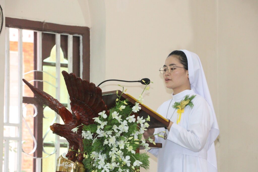 Sr. Genevieve Don Don is delivering the thanksgiving word (Photo by RVA Sgaw Karen)