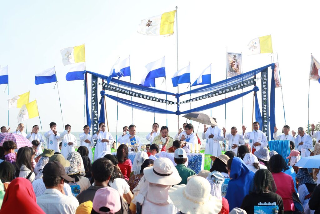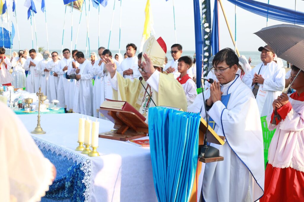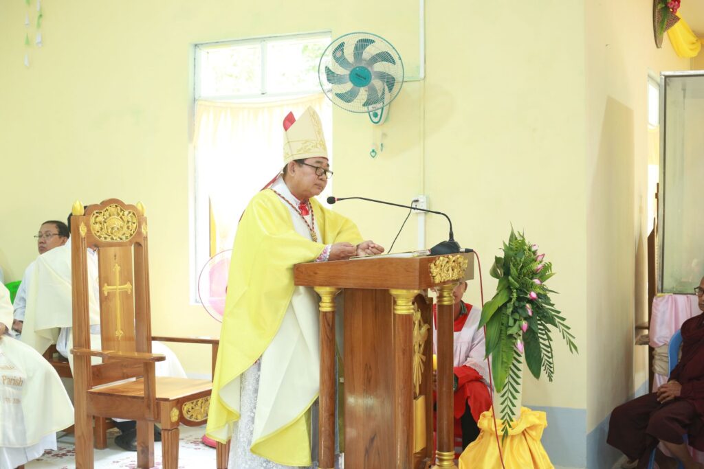 In his homily, Bishop Henry traced the community’s remarkable origins. During the turbulent 1960s, families fled political and social hardships in Wakema and Myaungmya, traveling by small boat across countless rivers in search of clean water and fertile land. They settled on what was then known as Amatkalay Island.