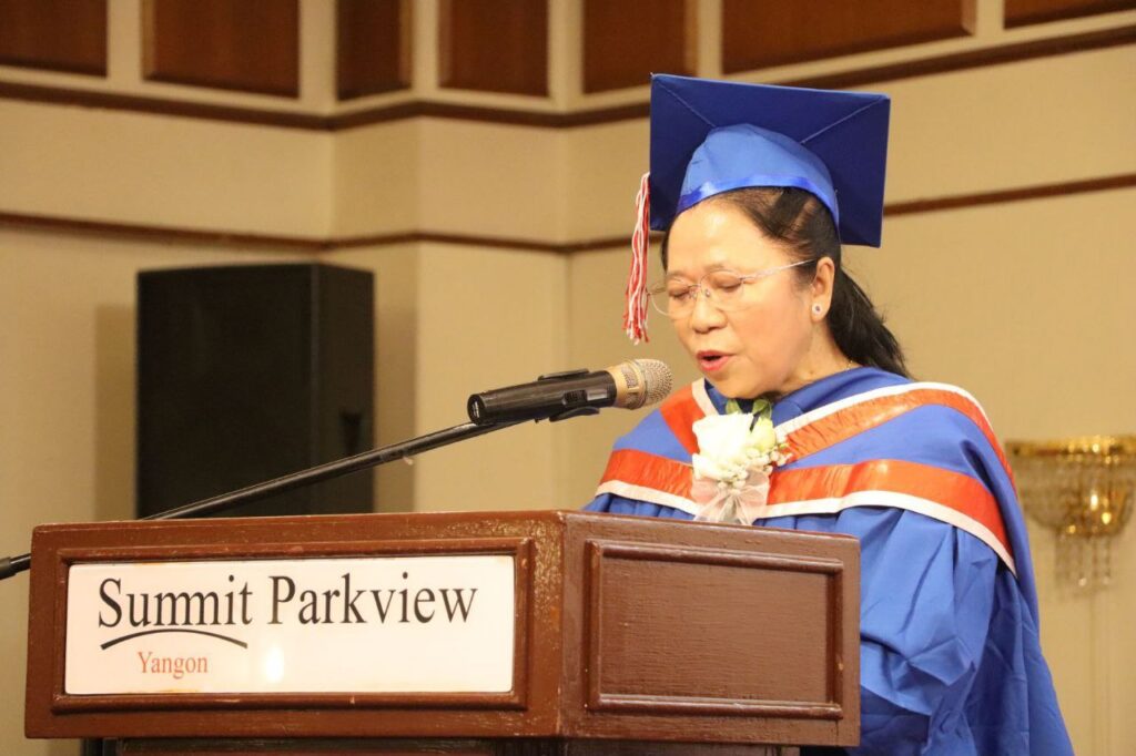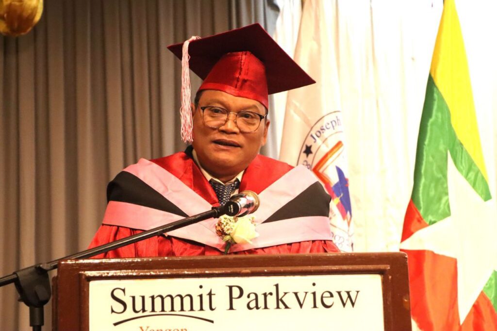 The ceremony at the Yangon Summit Parkview Hotel on January 10 honored three bachelor’s degree graduates and 27 Diploma graduates. In his opening address, Headmaster Joseph Win Hlaing Oo framed the achievement as an act of resilience, acknowledging that insecurity and armed conflict had drastically impacted enrollment.