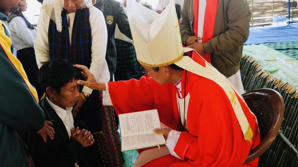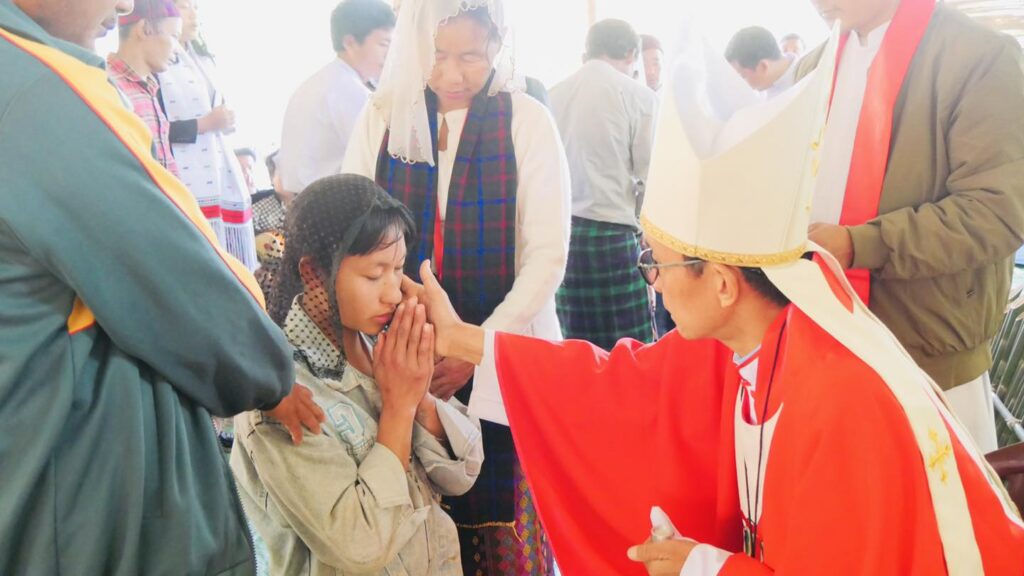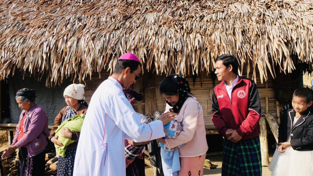 In a remote mountain camp sheltering families driven from their homes by conflict, Bishop John Mung Ngawn La Sam of Myitkyina Diocese brought a message of faith and endurance on February 12, administering Confirmation to 40 displaced Catholics during a pastoral visit.