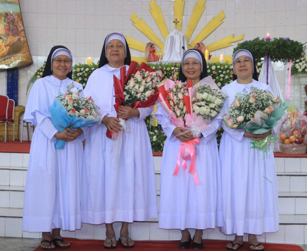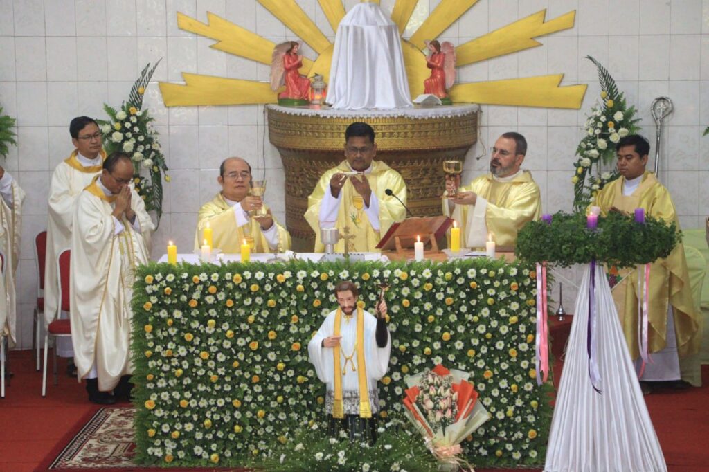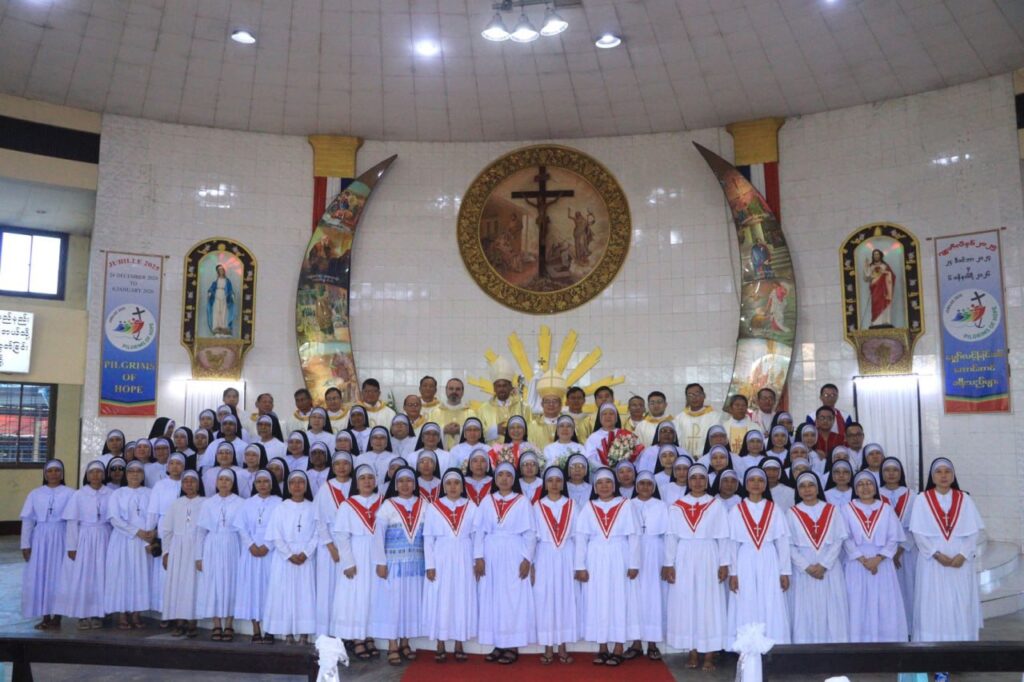 The festive Mass, presided over by Bishop Raymond Wai Lin Htun, Auxiliary Bishop of Yangon, and concelebrated by Bishop Maurice Nyunt Wai of Mawlamyine Diocese and 17 priests, also honored the Golden Jubilee of one sister and the Silver Jubilee of three others.