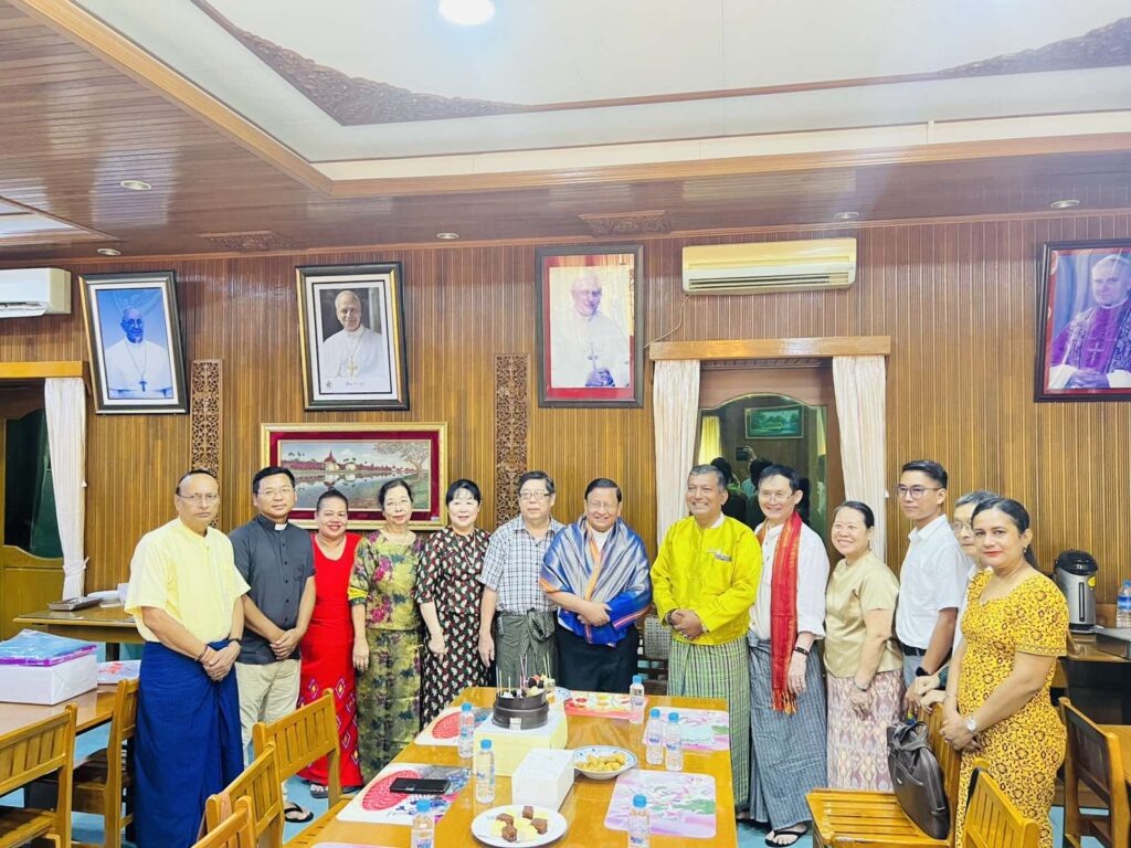 The cordial meeting, which took place at the Cardinal’s residence, included approximately twenty representatives from the Catholic Church, the Myanmar Council of Churches, and Hindu and Muslim communities. The early visit was arranged due to scheduling conflicts that would prevent most members from attending on his actual birthday.