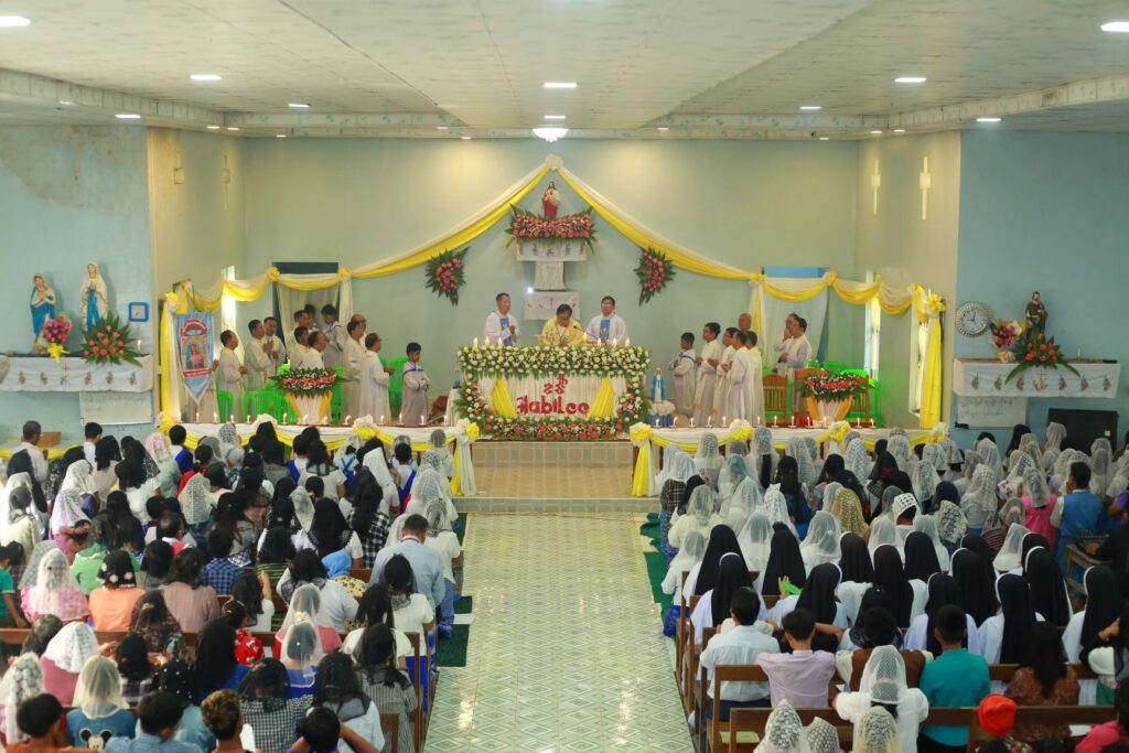 The celebration, held on the Solemnity of the Immaculate Conception at Sacred Heart of Jesus Church, was presided over by Bishop Henry Eikhlein of Pathein Diocese. He was joined by 17 priests and a congregation filled with Legion members and parishioners from surrounding villages.