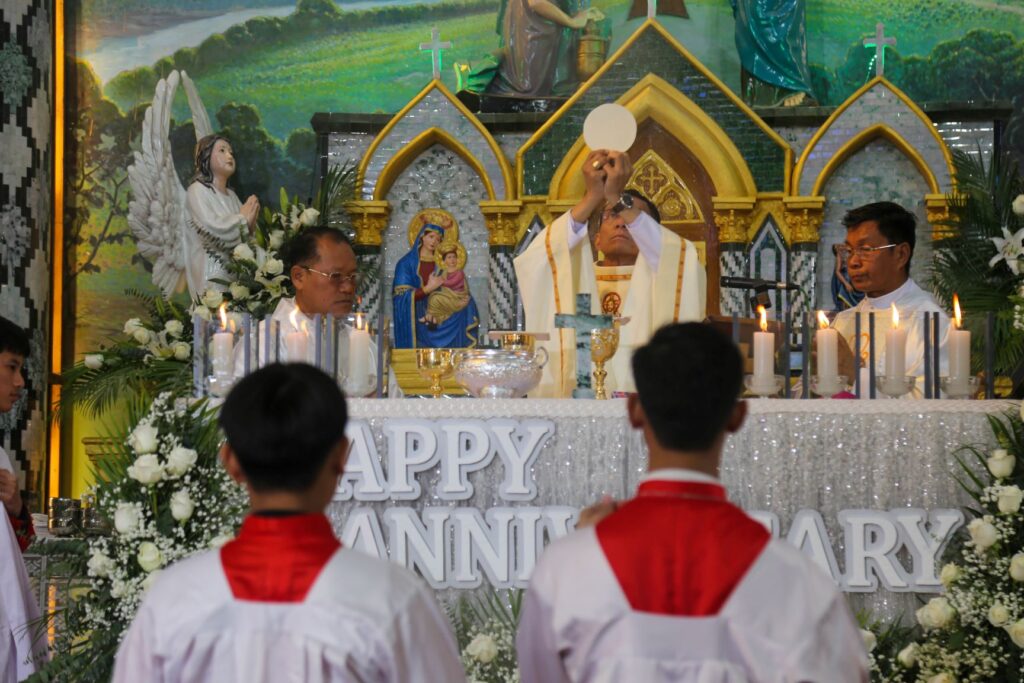 Bishop John Mung Ngawn La Sam is celebrating the Mass at his one year episcopal anniversary (photo by RVA Lisu)