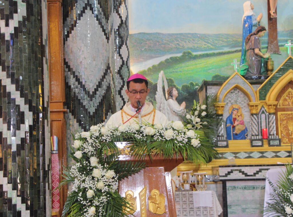 Bishop John Mung Ngawn La Sam is delivering the Homily at his one year episcopal anniversary (photo by RVA Lisu)