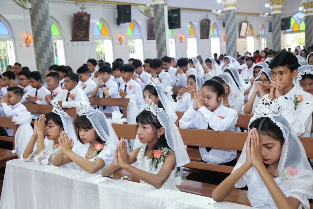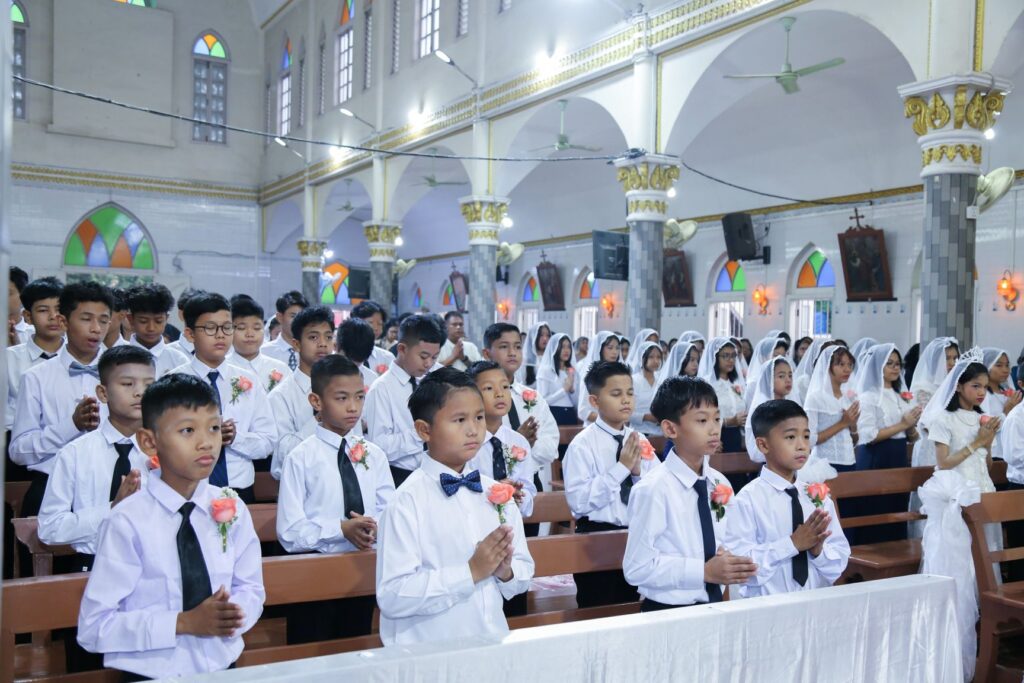Sixty-five children from St. Michael’s (Than Win) Parish received the Sacraments of First Holy Communion and Confirmation on April 6, in a celebration that marked a return to communal spiritual life after years of disruption.