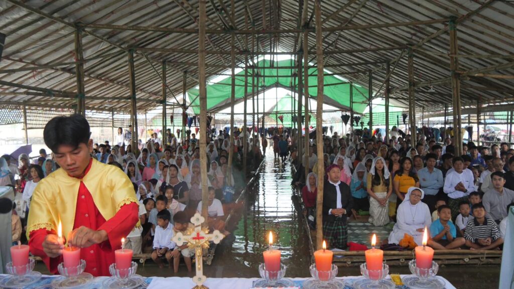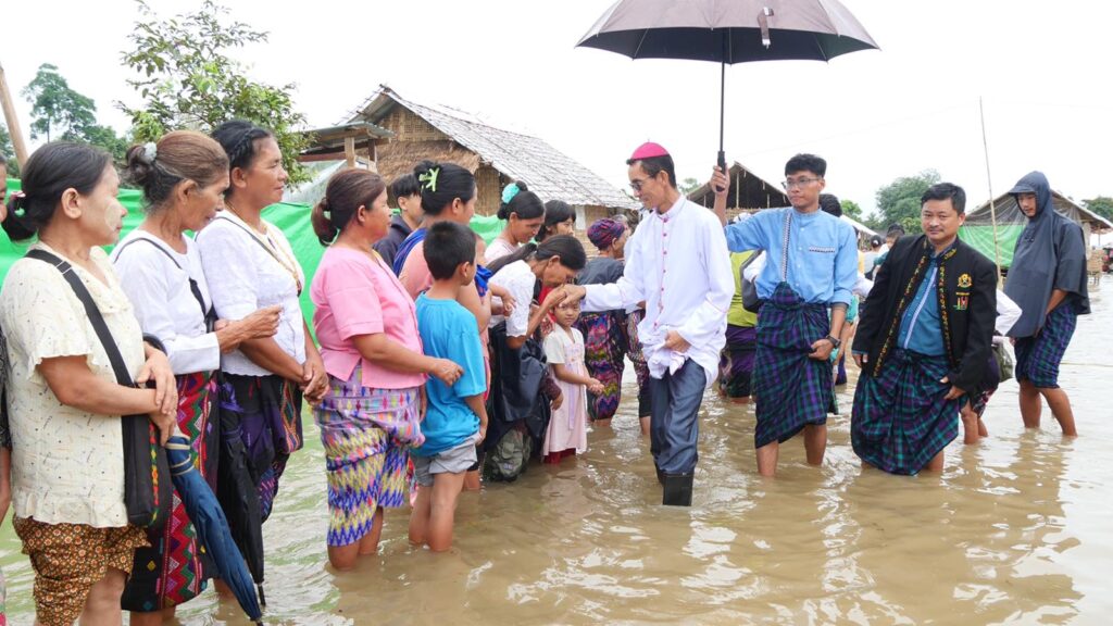 Myanmar Bishop Celebrates Historic “Mass on Water” at Flooded Myanmar Refugee Camp
