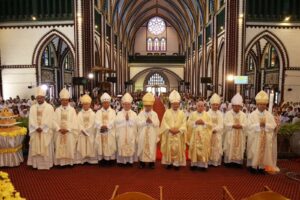 Thousands of faithful packed St. Mary’s Cathedral on April 9 as His Eminence Cardinal Charles Bo and Fr. Edward Sein Myint marked their Golden Jubilee of priestly ordination, a celebration of five decades of service to the Church in Myanmar.