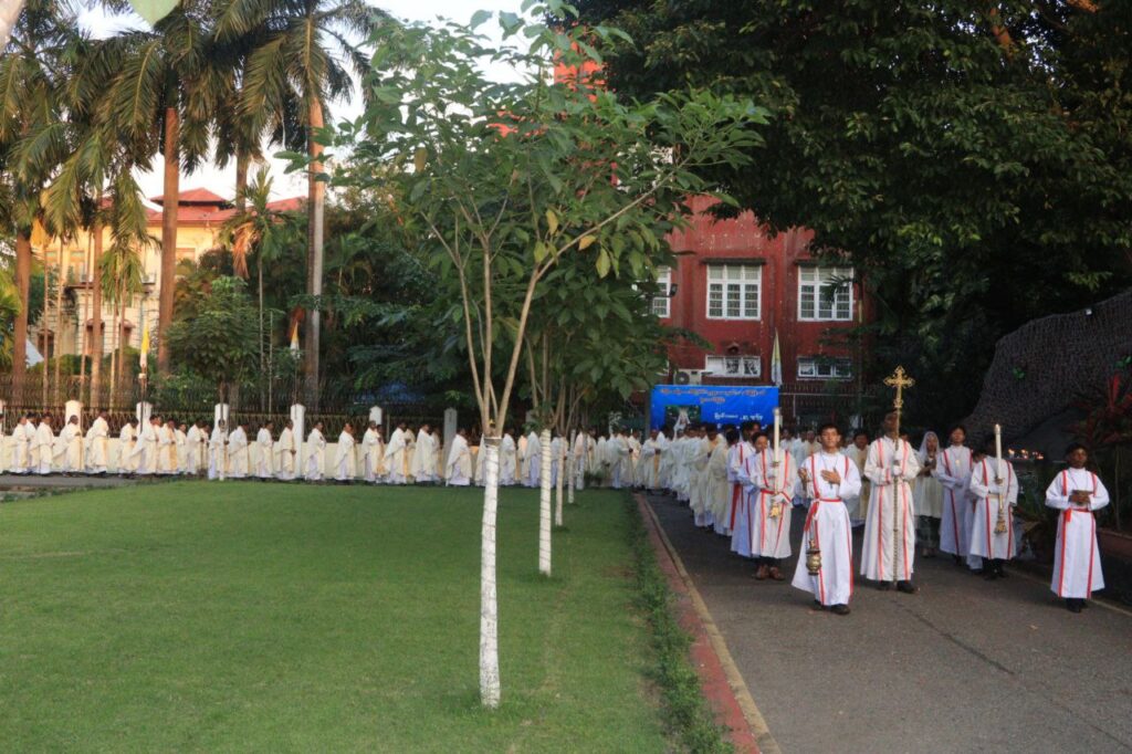 His Eminence Cardinal Charles Bo, Archbishop of Yangon, presided over the 5:00 p.m. Mass, concelebrated by three auxiliary bishops and over one hundred priests. The liturgy culminated in a nine-day novena marked by evening prayers and processions on the cathedral grounds.