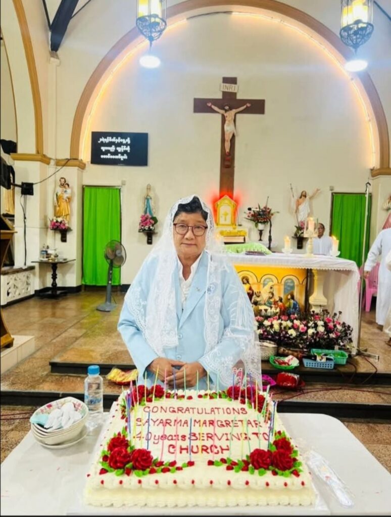 The St. Joseph Parish Church in Kyimyindaine Township celebrated a milestone on October 19, 2025, honoring Catechist Margarita Daw Tar for her four decades of missionary service in a jubilee Mass that coincided with World Mission Sunday.