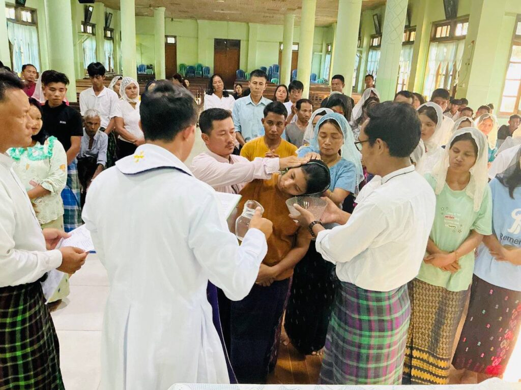 According to parish reports, the new converts came from diverse religious backgrounds, including seven from the Kachin Baptist Convention (KBC), six former animists (Nat Jaw), two from the Naga Baptist Church (NBC), one from the Anglican Church, and several others. The sacrament was administered by the Parish Priest, Reverend Father Peter Labu Naw San.