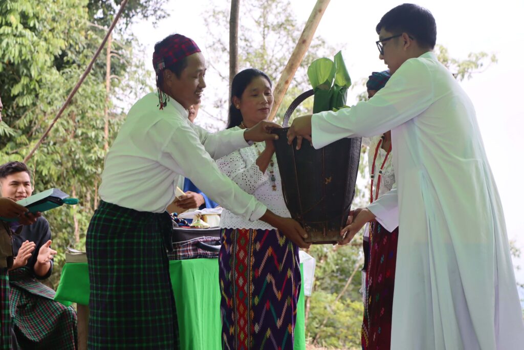 The spiritual dedication was led by Fr. John Byin Tu Aung of the Putao Zone and Fr. Mark Kyi Moe of Lonshayang Parish. The clergy offered prayers of blessing for the new site, culminating in the celebration of a Holy Mass at the summit to consecrate the grounds officially.