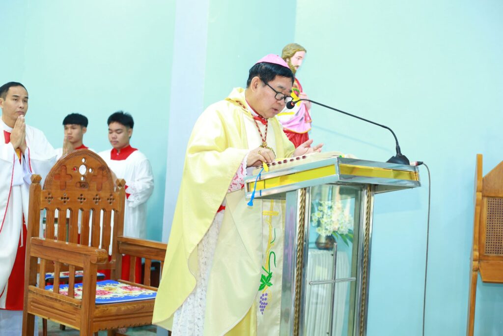 Bishop Henry Eikhlein is delivering the homily (Photo by RVA Pwo Karen)