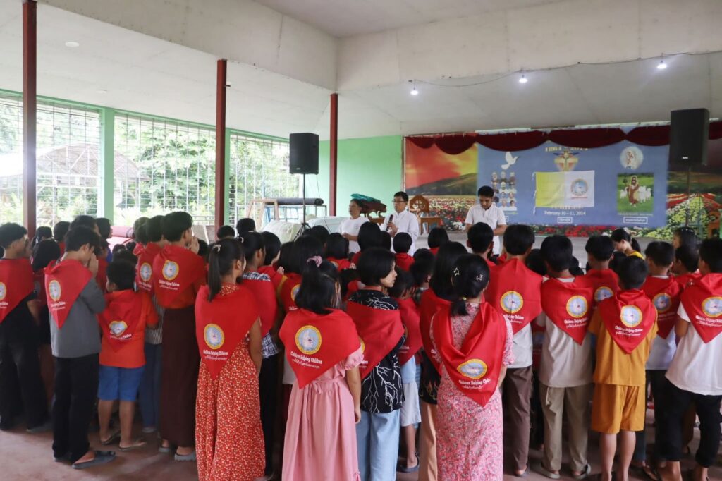 The formal establishment of the new society took place after Mass. Fr. Cyril Win Mg provided a history of the Pontifical Society of Missionary Childhood, explaining that it was founded in the 19th century by Bishop Charles de Forbin-Janson in France. He recounted how the bishop initially asked twelve children to help missions in China through daily prayer, small sacrifices, and offering a penny.