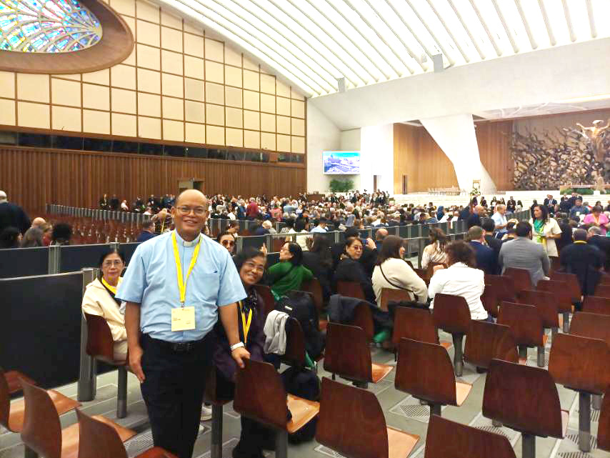Rev. Fr. Hyginus Myint Soe, is seen in Pope Paul VI hall (Photo credit to Rev. Fr. Hyginus Myint Soe)