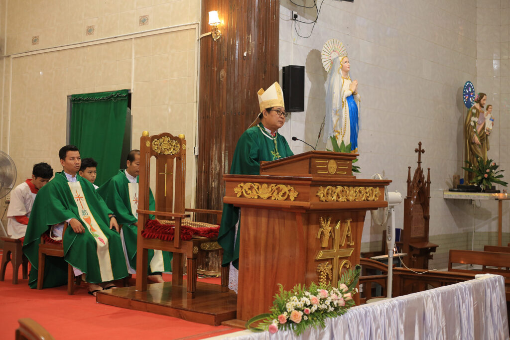His Excellency Bishop Henry Eikhlein of Pathein Diocese presided over the 6:00 AM Eucharistic celebration, which was concelebrated by priests and attended by religious brothers, sisters, catechists, boarding children, and the lay faithful.