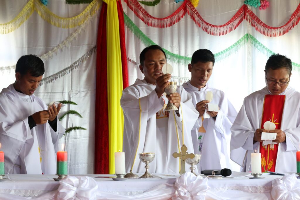 The Silver Jubilee event centered on a solemn Mass presided over by Rev. Fr. Dominic Thawm Hlei Hnin at St. Mary’s Church in the village. He was joined by three concelebrating priests and three religious sisters for the service, which featured thanksgiving prayers, hymns, and reflections on a quarter-century of faith in the village.