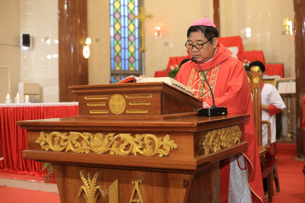 Bishop Henry Eikhlein is delivering the homily (Photo by Rva Pwo Karen)