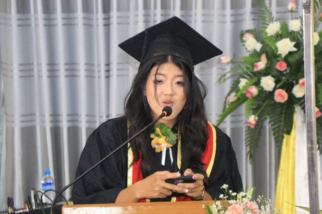 The ceremony also featured an alumni oath led by graduate Ms. Rose Khaing Mye Thu and a word of thanks from representative Maria Meng (Vung Lam Cing), who expressed gratitude for the program’s blend of classroom learning and practical field exposure.