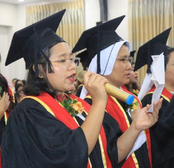 Twenty-eight graduates were present to receive their certificates at the 9:00 a.m. event, which began with an opening prayer from Fr. Joseph Zarni Win Khaing.
