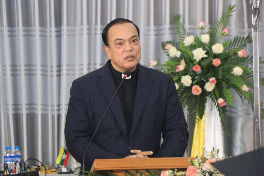Rev. Fr. Cyprian Aung Win, Rector of National Catholic Major Seminary, delivers an opening address (Photo by RVA Sgaw Karen)