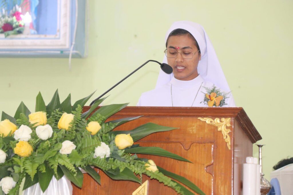 Sr. Lourthu Sheila Mary expressed gratitude to God for the blessings throughout her life. She thanked Cardinal Bo for presiding, the parish priest and community of St. Francis Xavier’s Church, the Mother General and formators of the congregation, and family members, relatives, and benefactors.
