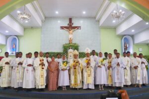 Sr. Ananthi Cecilia Mary and Sr. Lourthu Sheila Mary dedicated their lives to God through the vows of poverty, chastity, and obedience. His Eminence Cardinal Charles Bo of Yangon Archdiocese presided over the solemn Eucharistic celebration and delivered the homily.