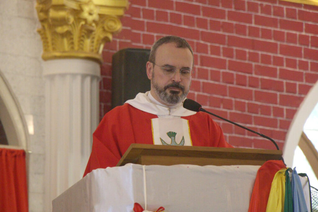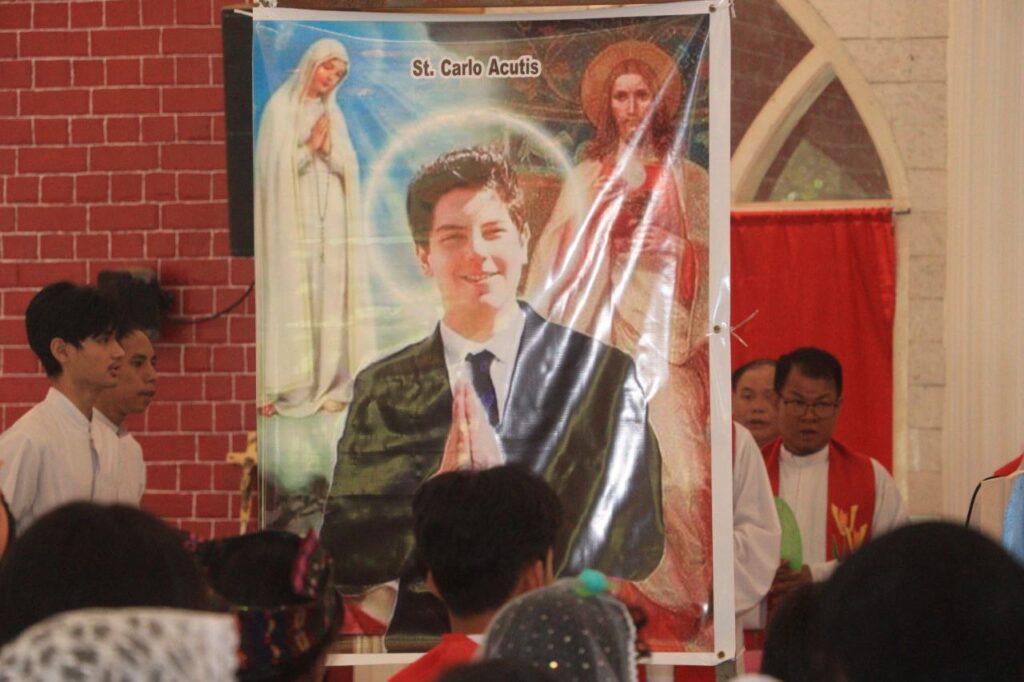 Beside the altar stood an image of Blessed Carlo Acutis, canonized on September 7, 2025, inspiring the young faithful.